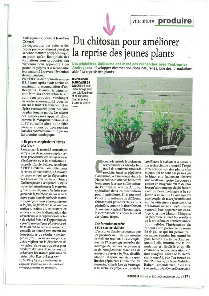 Ci-dessous l'article sur "réussir vigne" n°320 août/septembre 2024.