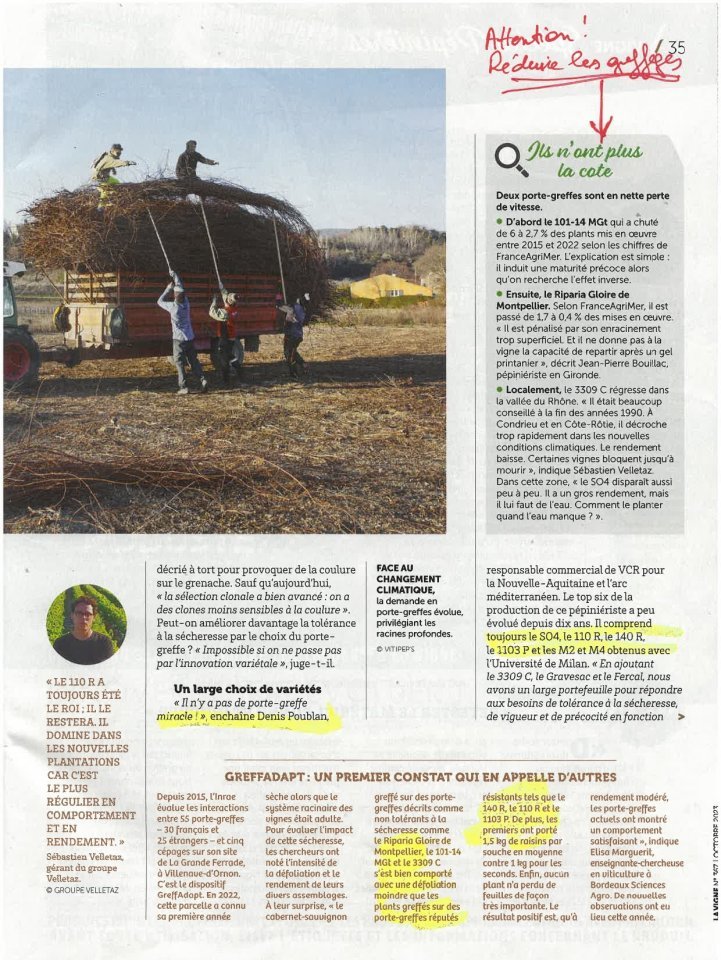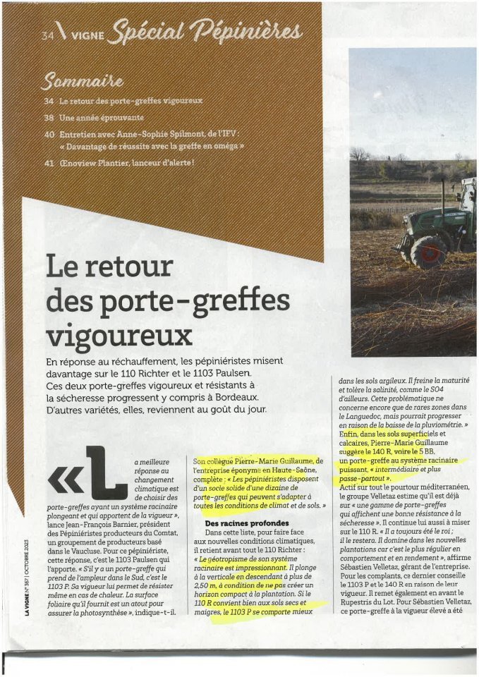 Suite au réchauffement climatique, voici un article sur deux porte-greffes le 110 Ritcher et le 1103 Paulsen.